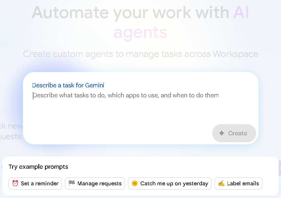 這個新平台的核心是 Gemini 3 模型強大的推理和多模態能力,它能幫你把日常重複的工作自動化,。使用者只需要描述想要自動化的流程,Gemini 3 就能幫你生成代理。