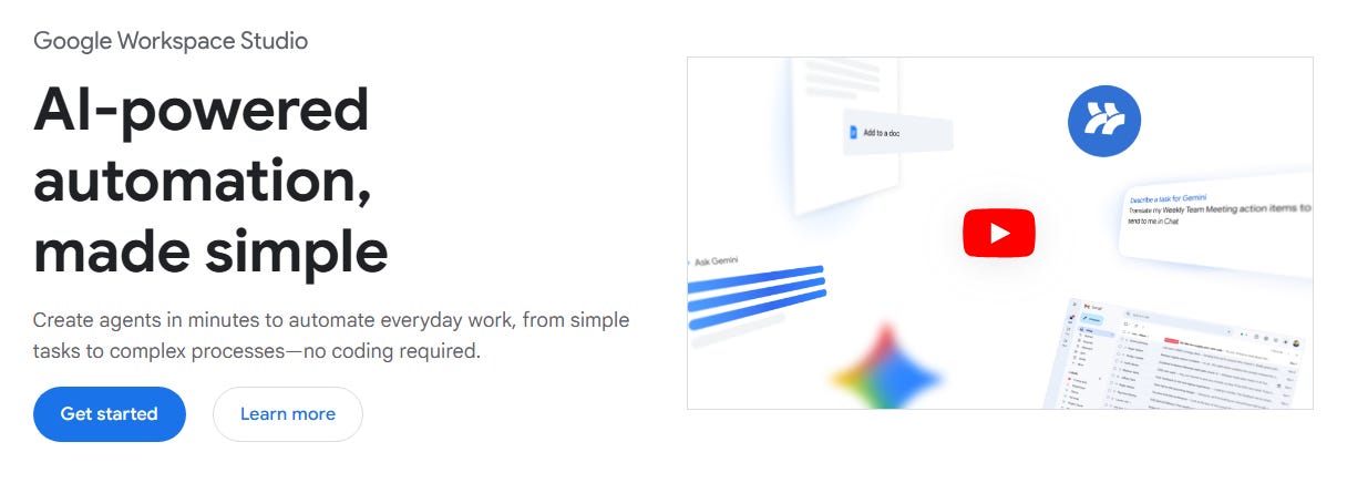 Google 最近為企業用戶推出 Workspace Studio 這是一個無程式碼(No-code)的自動化平台,目標是讓公司裡的員工,就算完全不懂程式,也能打造出自己的 AI Agent。