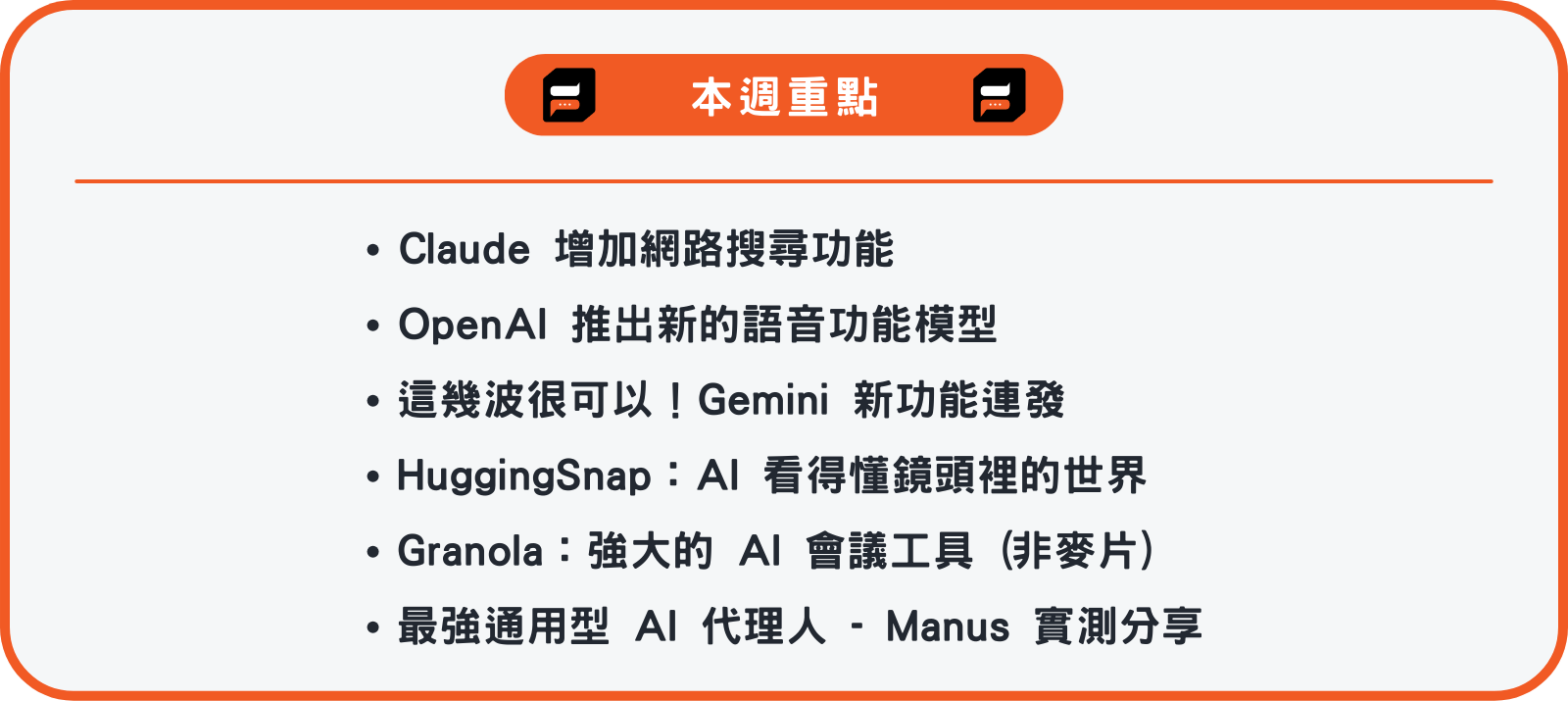 Gemini 會把複雜資訊唸給你聽,用自然語音講解重點,可以像聽 podcast 一樣快速掌握內容~適合在通勤、做家事或沒空看螢幕的時候聽。