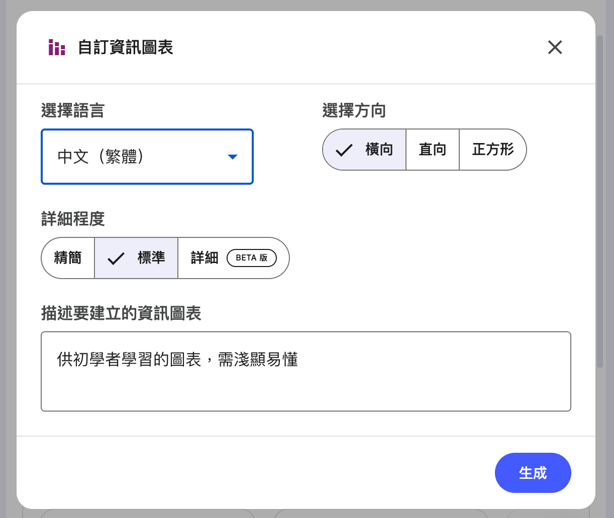 經過測試,目前生成簡報和資訊圖表的功能似乎因使用人數過多而暫時管制中,不開放免費版用戶使用,目前僅開放給 Pro 版用戶。(但使用額度不明)