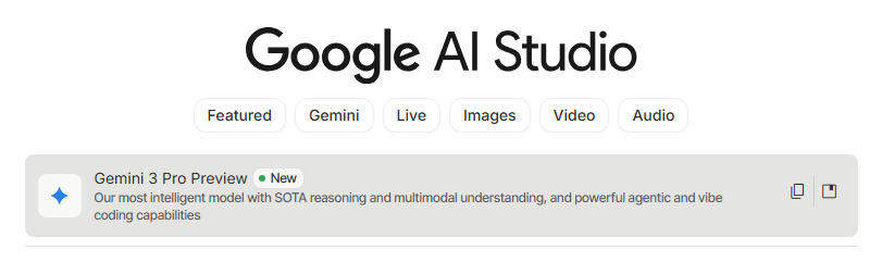 方法二:從 Google AI Studio 進入,選擇「Gemini 3 Pro preview」