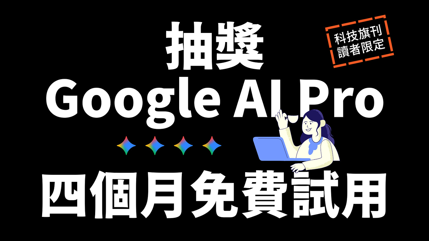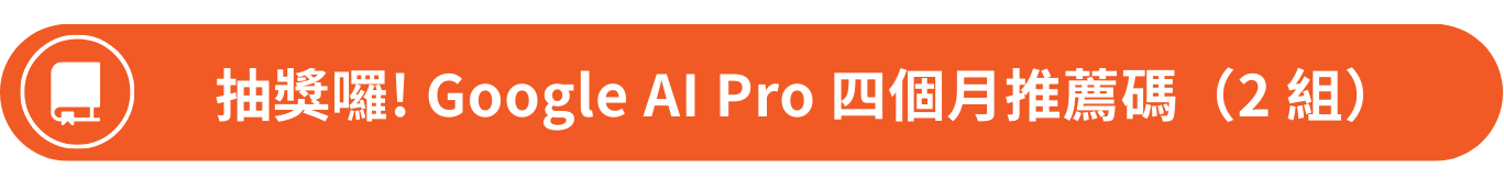 想要試試看這兩個酷功能的朋友,絕對不能錯過本次科技旗刊的抽獎活動啦!在本次科技旗刊,我們將抽出兩位幸運得主獲得「Google AI Pro 四個月推薦碼一組」讓你突破免費用戶的限制,盡情地使用 Google 系列 AI 工具來輔助你的工作!詳情請見文末資訊。